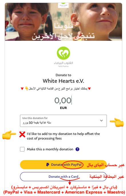 يمكنك الضغط على زر الباي بال التالي 👇 للتوجه لصفحة التبرع