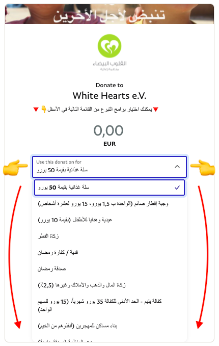 من القائمة في الأعلى يمكنك اختيار برامج التبرع