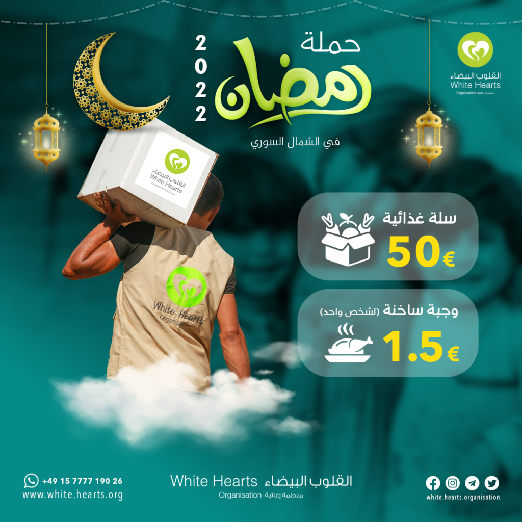 مع قدوم شهر رمضان 🌘 المبارك، كُلَ عام تُطلق منظمة القلوب البيضاء حملة رمضانية لدعم المهجرين من الأرامل 👩🏻‍🦱 والمساكين،
